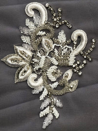 The floral design is created using a combination of delicate beads and sparkling sequins, which are carefully selected for their quality and beauty. The result is a stunning motif that is sure to catch the eye of anyone who sees it.